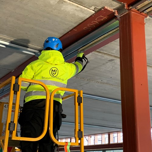 Vi utför brandskyddsåtgärder såsom isolering och målning av bärande element och takkonstruktioner.